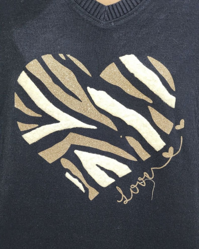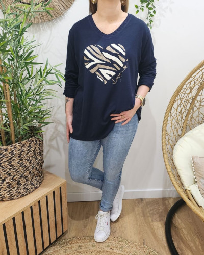 Pull femme oversize coeur zébré